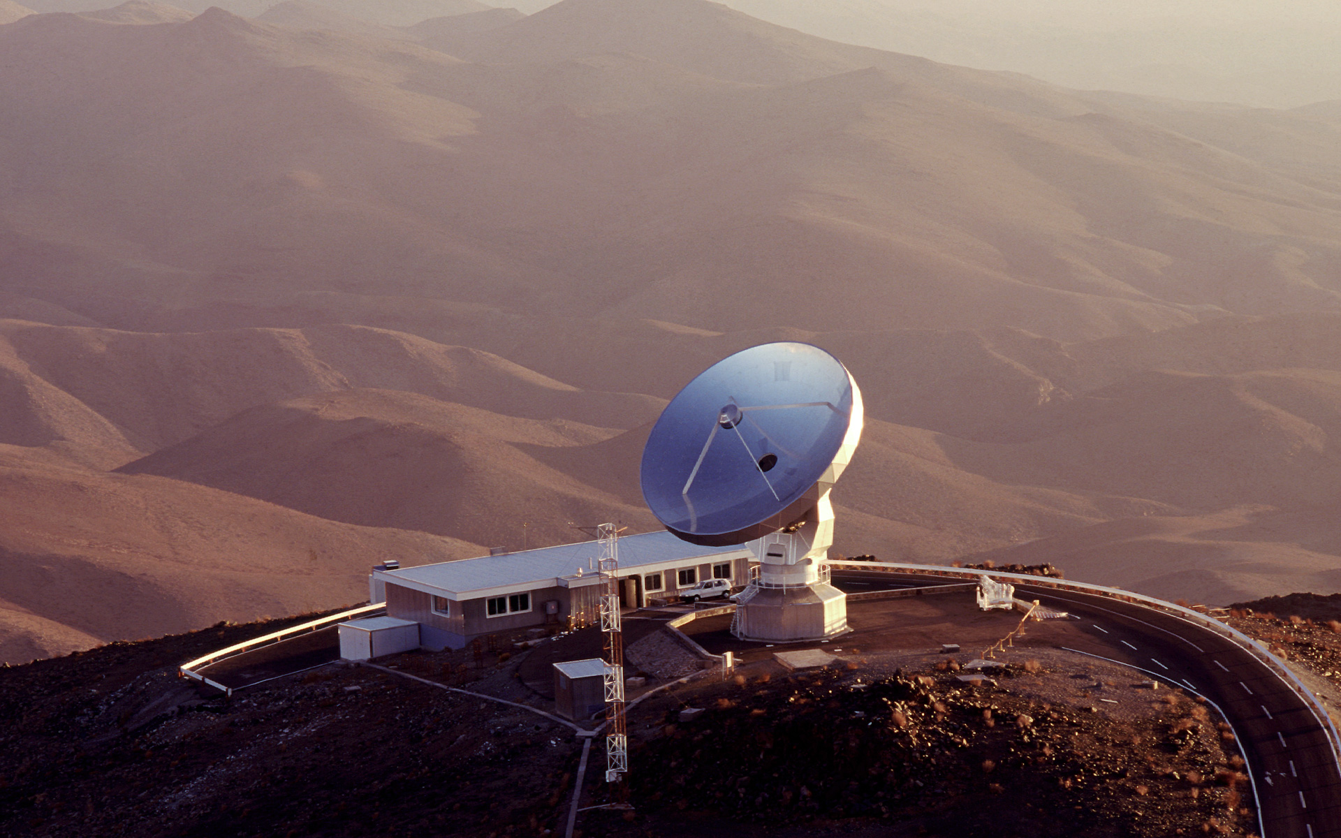 The Swedish ESO Submillimetre Telescope and control room at La Silla Observatory in Chile.