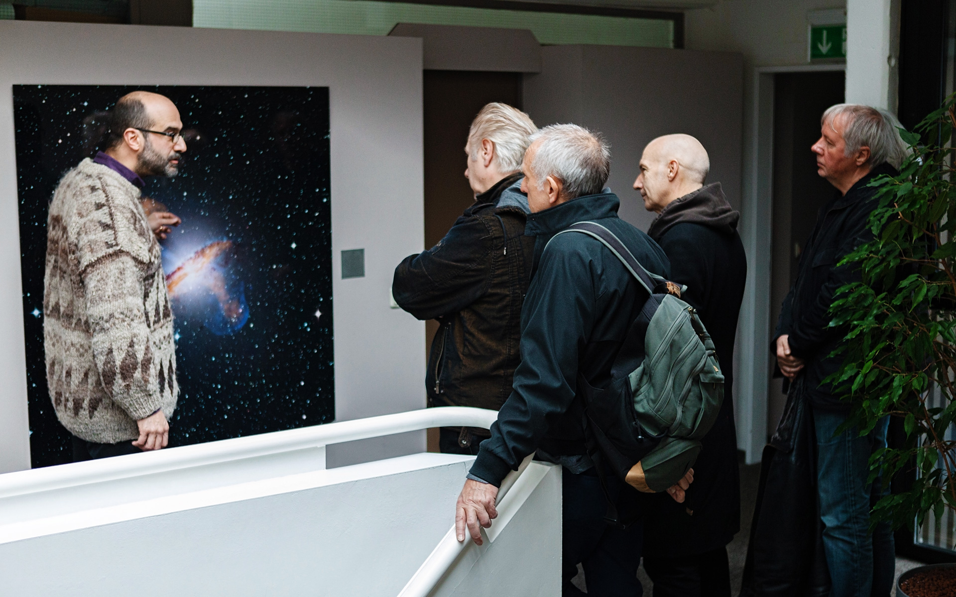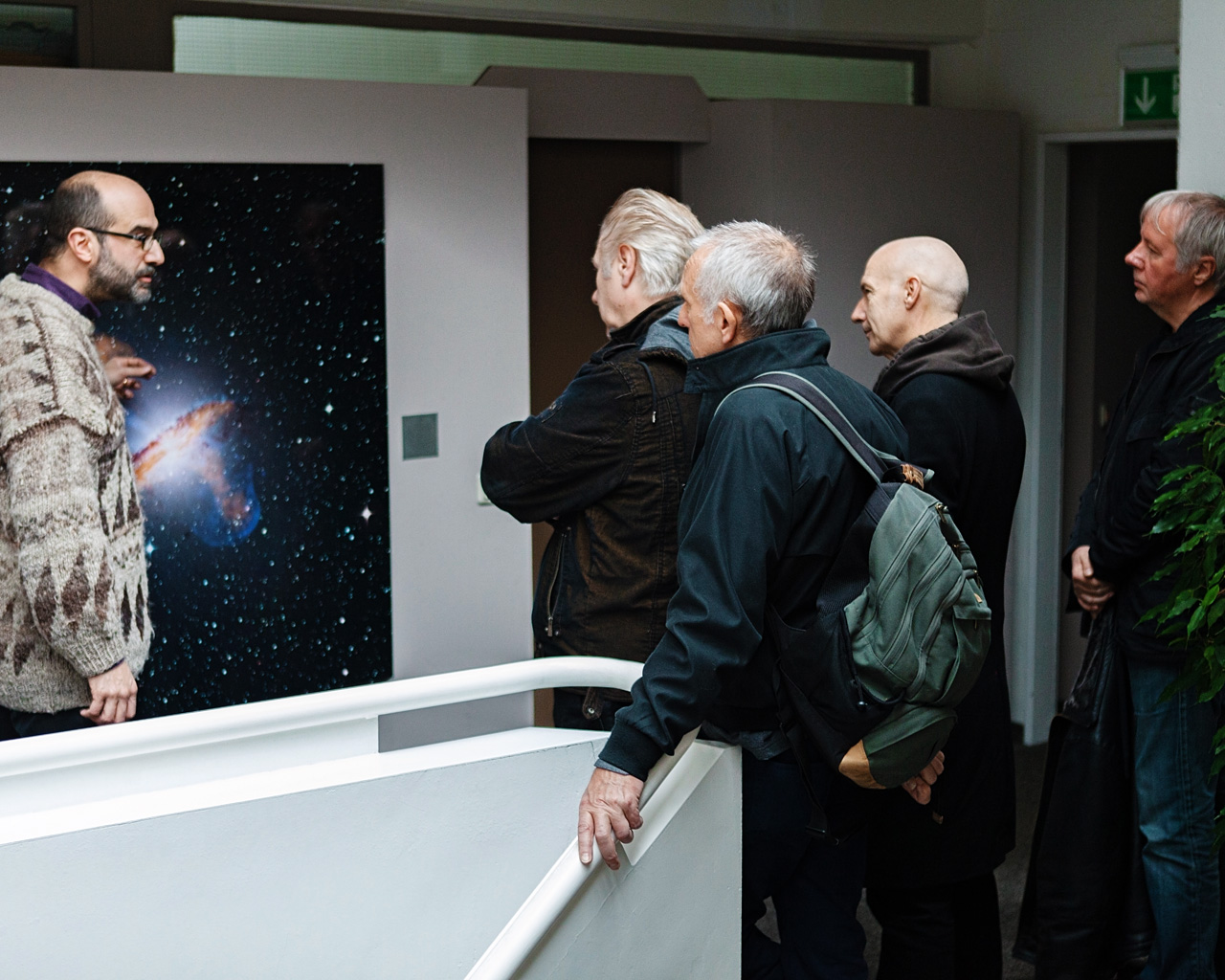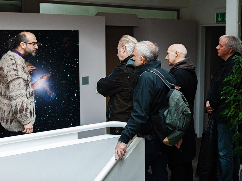 British New Wave rock band Ultravox on a guided tour of ESO's Garching Headquarters on 28 October 2012. The band admired some of the spectacular astronomical images that adorn the walls of ESO's headquarters while learning more about the observatory and its facilities from astronomer Olivier Hainaut.