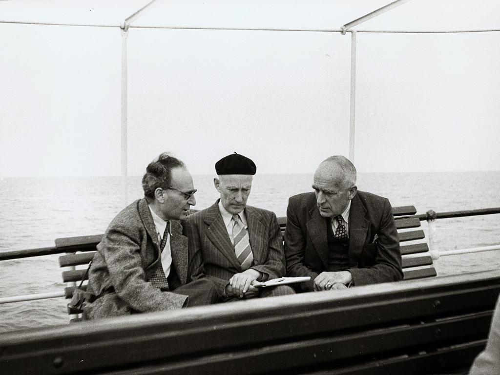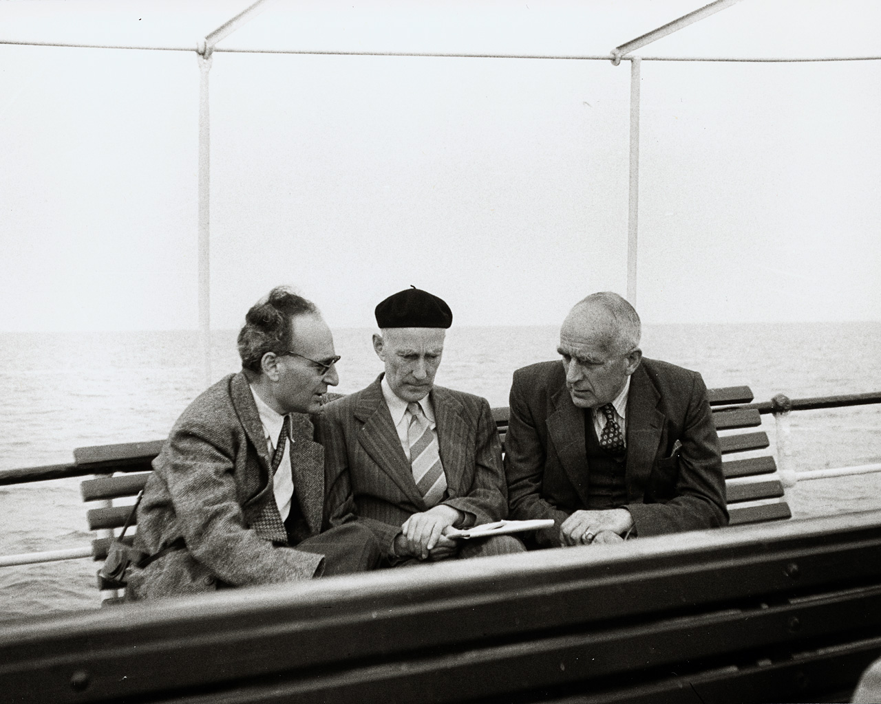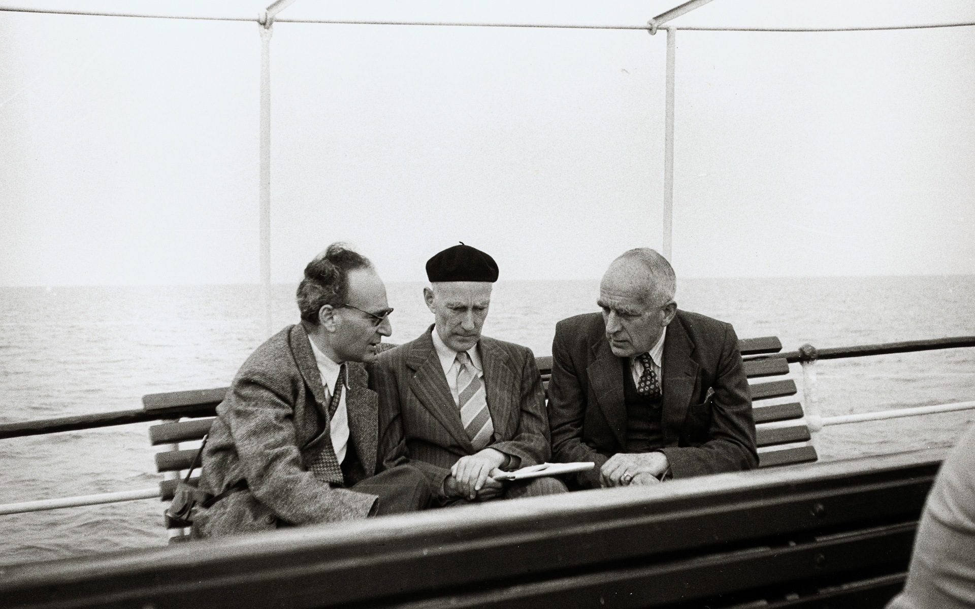 21st of June, 1953 — the beginning of ESO. During a conference at Leiden Observatory, a group of astronomers discussed the idea of a joint European effort in astronomy. The persons in this picture, from left to right: V. Kourganoff, France, J.H. Oort, Netherlands and H. Spencer, Great Britain.