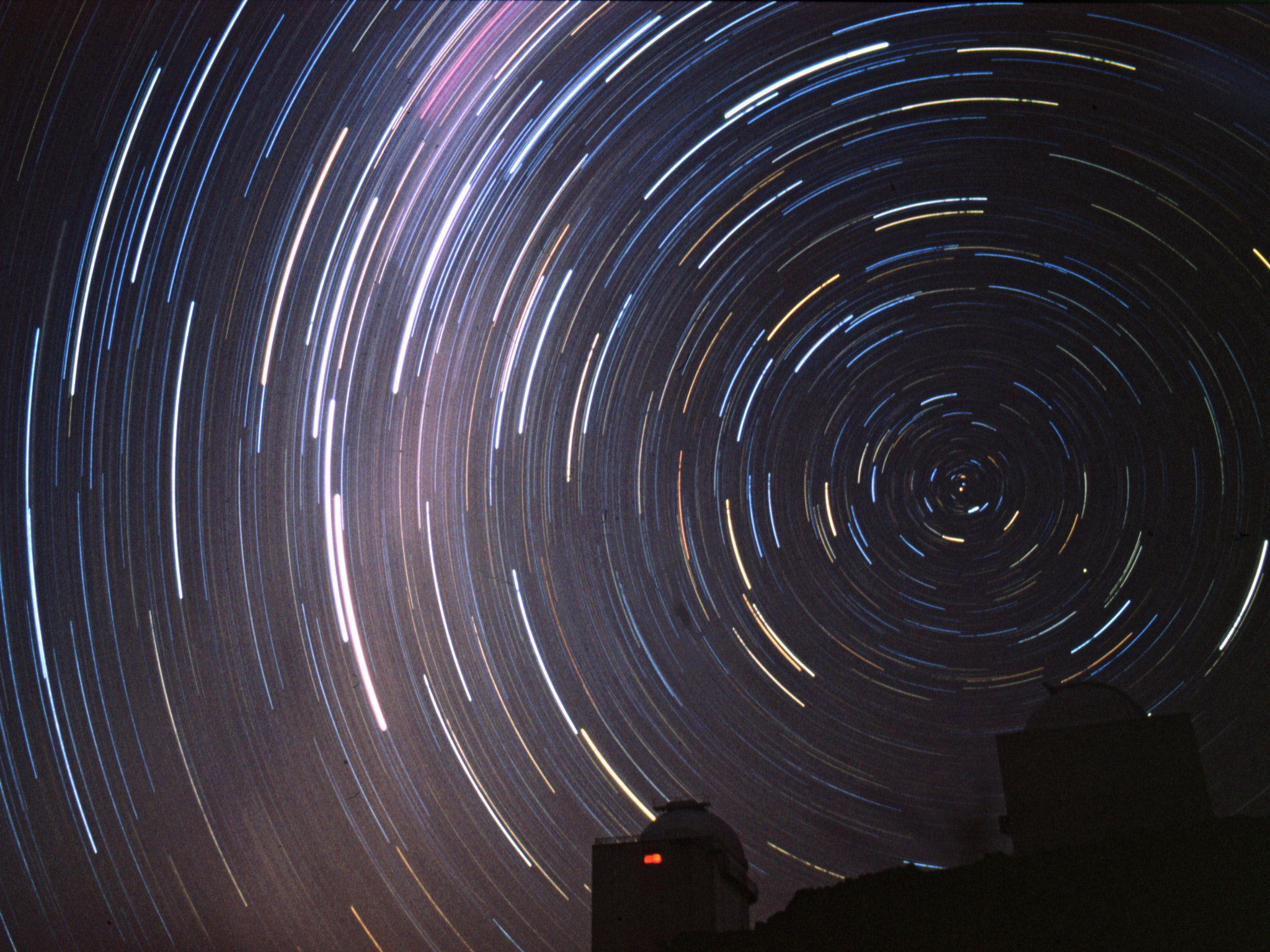 This image shows the MPG/ESO 2.2-metre telescope which has been in operation at the La Silla observatory since 1984. The telescope is shared between the Max Planck Society and ESO, with the operation and maintenance being ESO's responsibility. The effect of the stars swirling above the telescope is created by taking the photograph with a very long exposure time, capturing the way the stars appear to move as the Earth rotates.