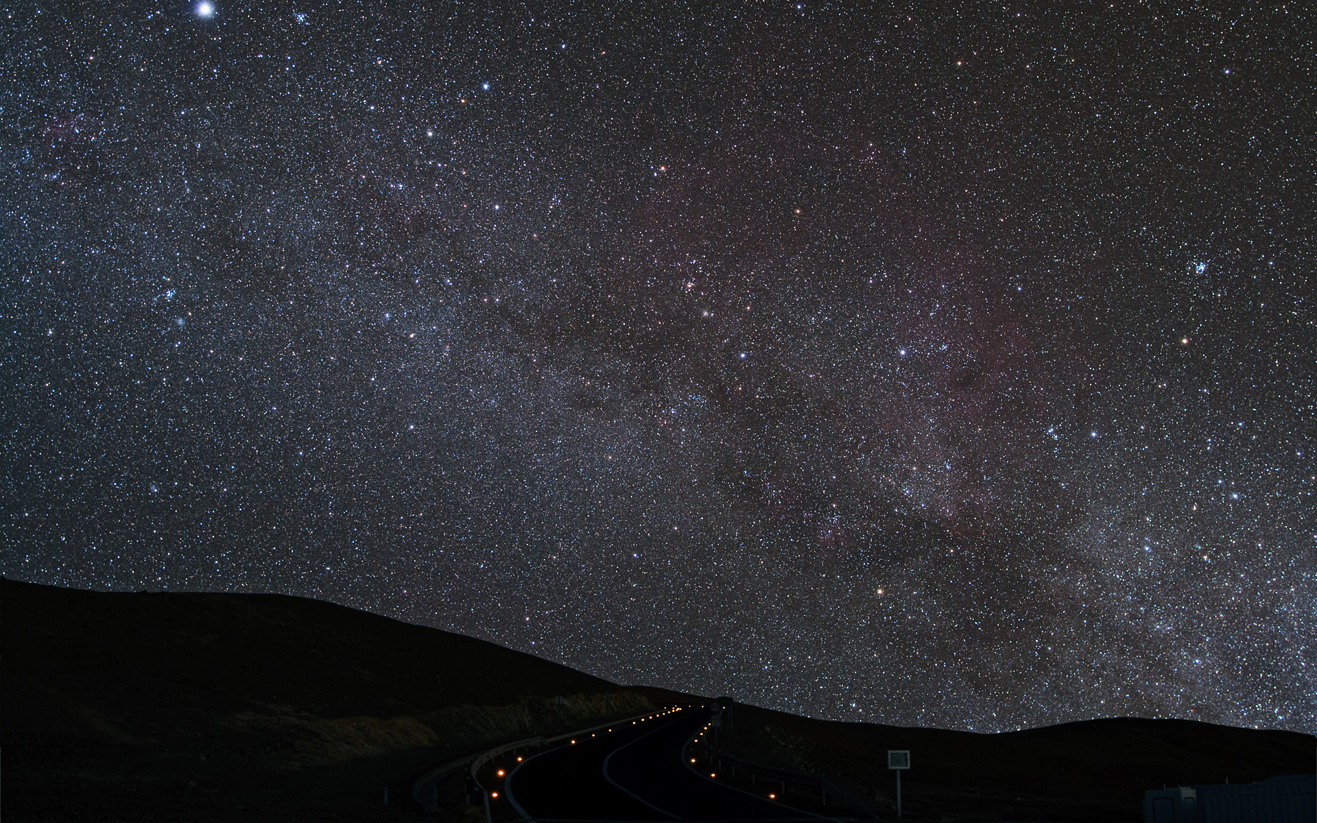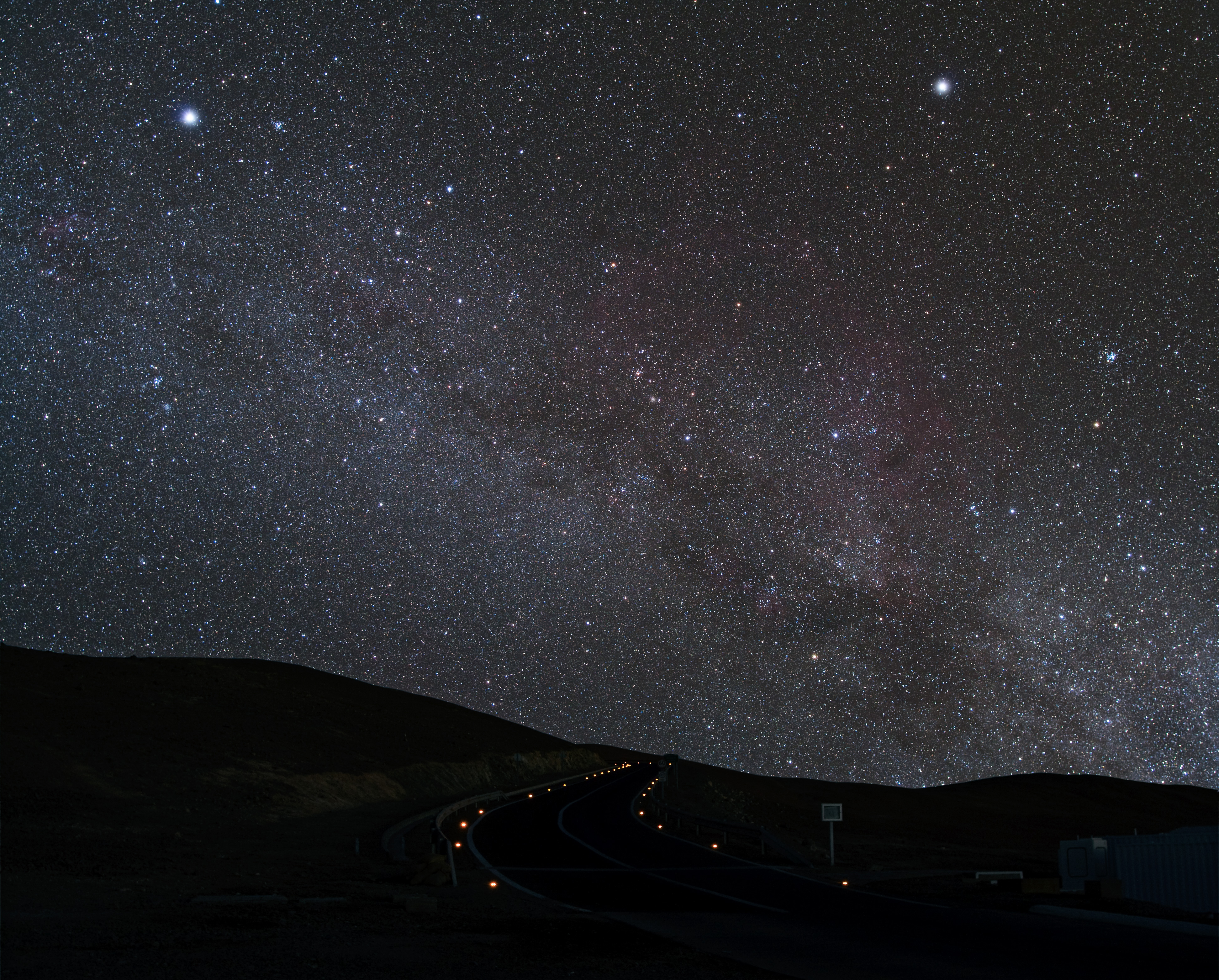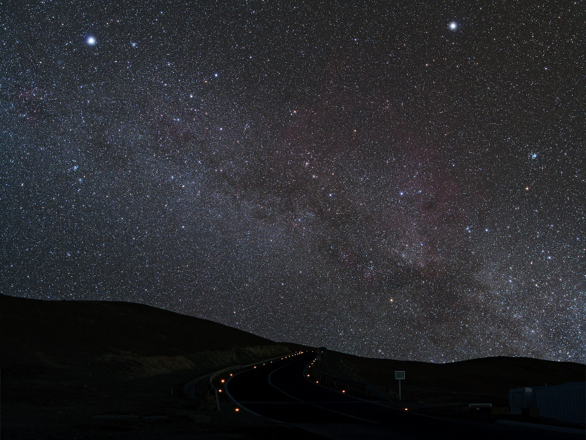 Starry night on the winding road leading to Cerro Paranal, home to ESO’s Very Large Telescope.