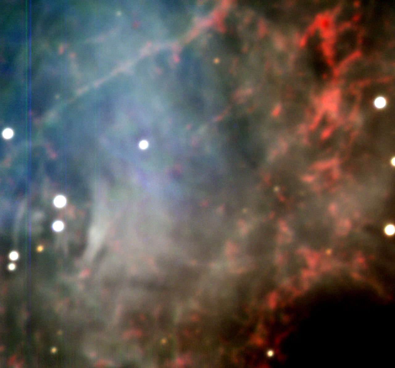 Despite the comparatively short exposure time, myriads of stars were seen when this "first frame" was displayed on the computer screen. Moreover, the sizes of these images were found to be virtually identical to the 0.6 arcsec seeing measured simultaneously with a monitor telescope, outside the telescope enclosure. This confirmed that MELIPAL was in very good shape. Nevertheless, these very first images were still slightly elongated and further optical adjustments and tests were therefore made to eliminate this unwanted effect. It is a tribute to the extensive experience and fine skills of the ESO staff that within only 1 hour, a 30 sec exposure of the central region of the Crab Nebula in Taurus with round images was obtained, cf. ESO Press Photo eso0004.