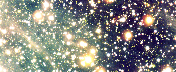 Legions of stars are seen in the photos. This is partly because of the extraordinary light sensitivity of the VLT, and partly because a star-forming region is located in this direction. Stars like our Sun appear whitish, relatively cool stars emit little blue light and appear more reddish, while hot stars appear blue.