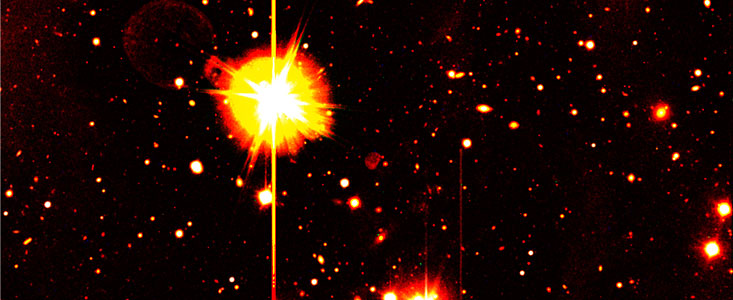[4]: In fact, the object was so faint that the positioning of the spectrograph slit had to be done in "blind" offset, i.e. without actually seeing the object on the slit during the observation. This very difficult observational feat was possible because of excellent preparations by the team of astronomers and the very good precision of the telescope and instrument.