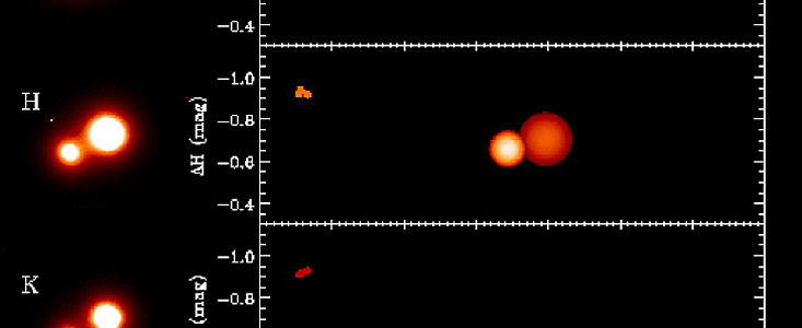 The short orbital period and the even shorter duration of the eclipses, only 6 hours, posed a real challenge for the observers. They decided to obtain further high-angular resolution observations with the ADaptive Optics Near Infrared System (ADONIS) on the 3.6-m telescope at the ESO La Silla Observatory. Most fortunately, early ADONIS images demonstrated that this binary stellar system has a third companion, sufficiently far away from the two others to be seen as a separate star by ADONIS. This unexpected bonus made it possible to monitor the light changes of the binary system in great detail, by using the third companion as a convenient "reference" star.
