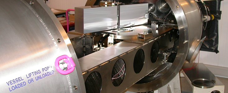Moreover, the spectrograph is placed inside a vacuum tank to reduce to a minimum any movement of the sensitive optical elements because of changes in pressure and temperature. The temperature of the critical components of HARPS itself is kept very stable, with less than 0.005 degree variation and the spectrum therefore drifts by less than 2 m/s per night. This is a very small value - 1 m/s corresponds to a displacement of the stellar spectrum on the CCD detector by about 1/1000 the size of one CCD pixel, which is equivalent to 15 nm or only about 150 silicon atoms! This drift is continuously measured by means of a Thorium spectrum which is simultaneously recorded on the detector with an accuracy of only 20 cm/s.
