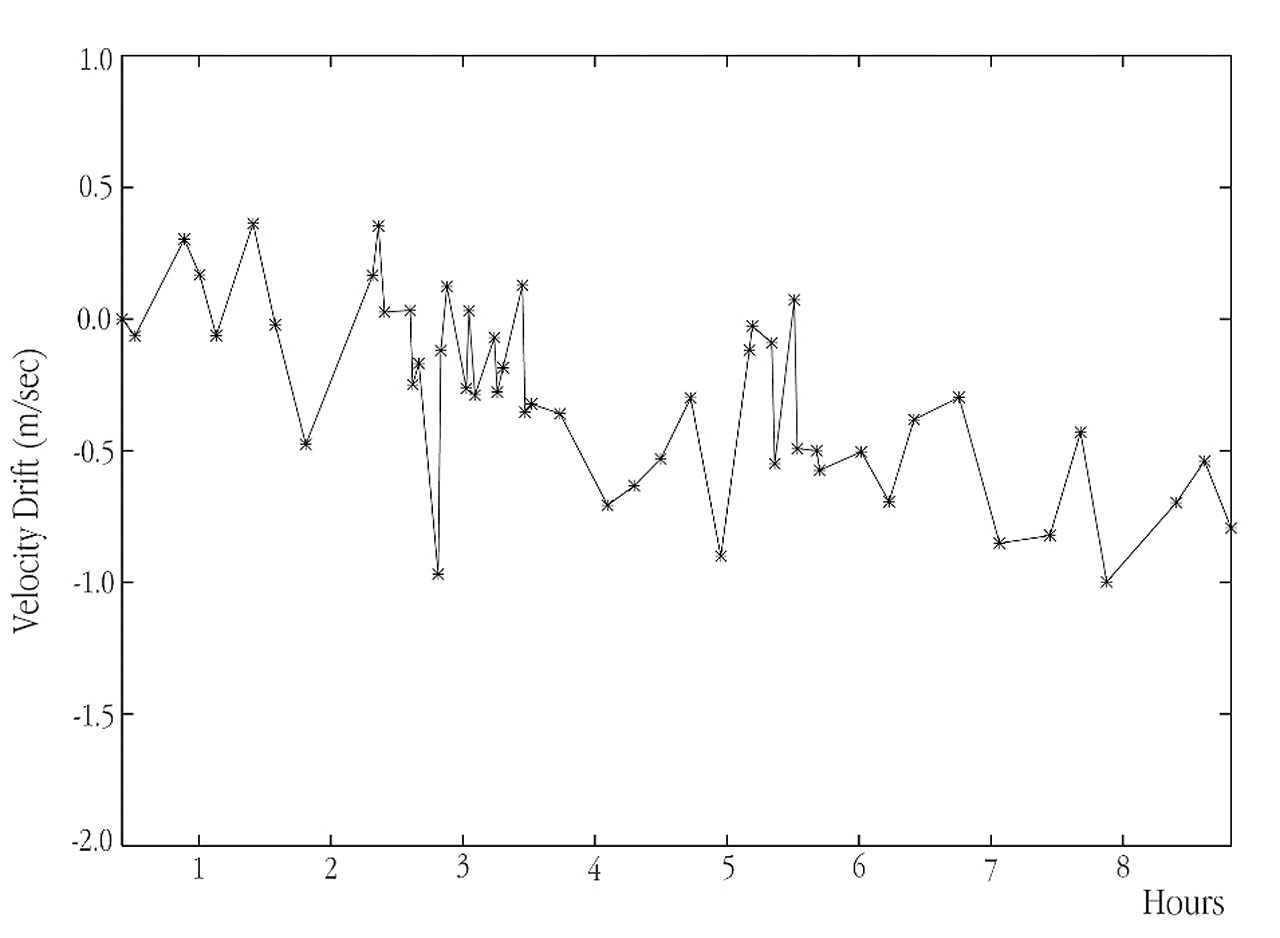 [1] The high level of stability achieved by the thermostatically controlled vacuum-spectrograph HARPS has never before been reached by any other astronomical spectrograph. In the case of more conventional instruments, drifts of several hundreds of m/s may occur during one observing night due to the variation of atmospheric pressure (at the rate of about 90 m/s for 1 mbar variation) or the ambient air temperature (300 m/s for 1° variation). It is expected that there will be a smooth drift of perhaps a few tens of m/s during one year, due to thermo-mechanical flexure and relaxation of the HARPS instrument. However, since such a long-term drift can be measured regularly and very accurately by means of the Thorium calibration spectrum, this effect can be fully compensated for and thus poses no problem. In fact, the measured nightly drift of HARPS is so small and so smooth that it is possible to compute an average value of this drift with an accuracy of only a few cm/s.