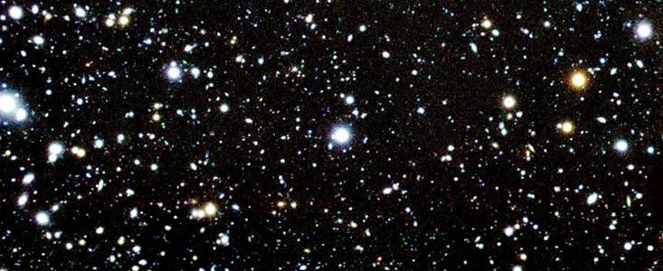 Using the ESO Very Large Telescope (VLT) , two astronomers from Germany and the UK [2] have discovered some of the most distant galaxies ever seen. They are located about 12,600 million light-years away. It has taken the light now recorded by the VLT about nine-tenths of the age of the Universe to traverse this huge distance. We therefore observe those galaxies as they were at a time when the Universe was very young, less than about 10% of its present age . At this time, the Universe was emerging from a long period known as the "Dark Ages," entering the luminous "Cosmic Renaissance" epoch. Unlike previous studies which resulted in the discovery of a few, widely dispersed galaxies at this early epoch, the present study found at least six remote citizens within a small sky area, less than five per cent the size of the full moon! This allowed understanding the evolution of these galaxies and how they affect the state of the Universe in its youth. In particular, the astronomers conclude on the basis of their unique data that there were considerably fewer luminous galaxies in the Universe at this early stage than 500 million years later. There must therefore be many less luminous galaxies in the region of space that they studied, too faint to be detected in this study. It must be those still unidentified galaxies that emit the majority of the energetic photons needed to ionise the hydrogen in the Universe at that particularly epoch.
