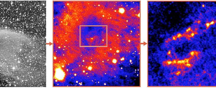 As an unexpected and welcome bonus, the astronomers also detected several jet- and knot-like structures in the Ks-band image (right panel in ESO Press Photo eso0327), near the IRAS source. The area shown represents the innermost region of the cloud (65 x 50 arcsec 2, or just 1/500 of the area of the DSS image to the left).