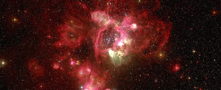 Nausicaa Delmotte, member of the team, adds: "With its colourful beauty, N44 is a display of the violent phenomena that occur as the heaviest known stars unfold their power on the parental gas out of which they were born."
