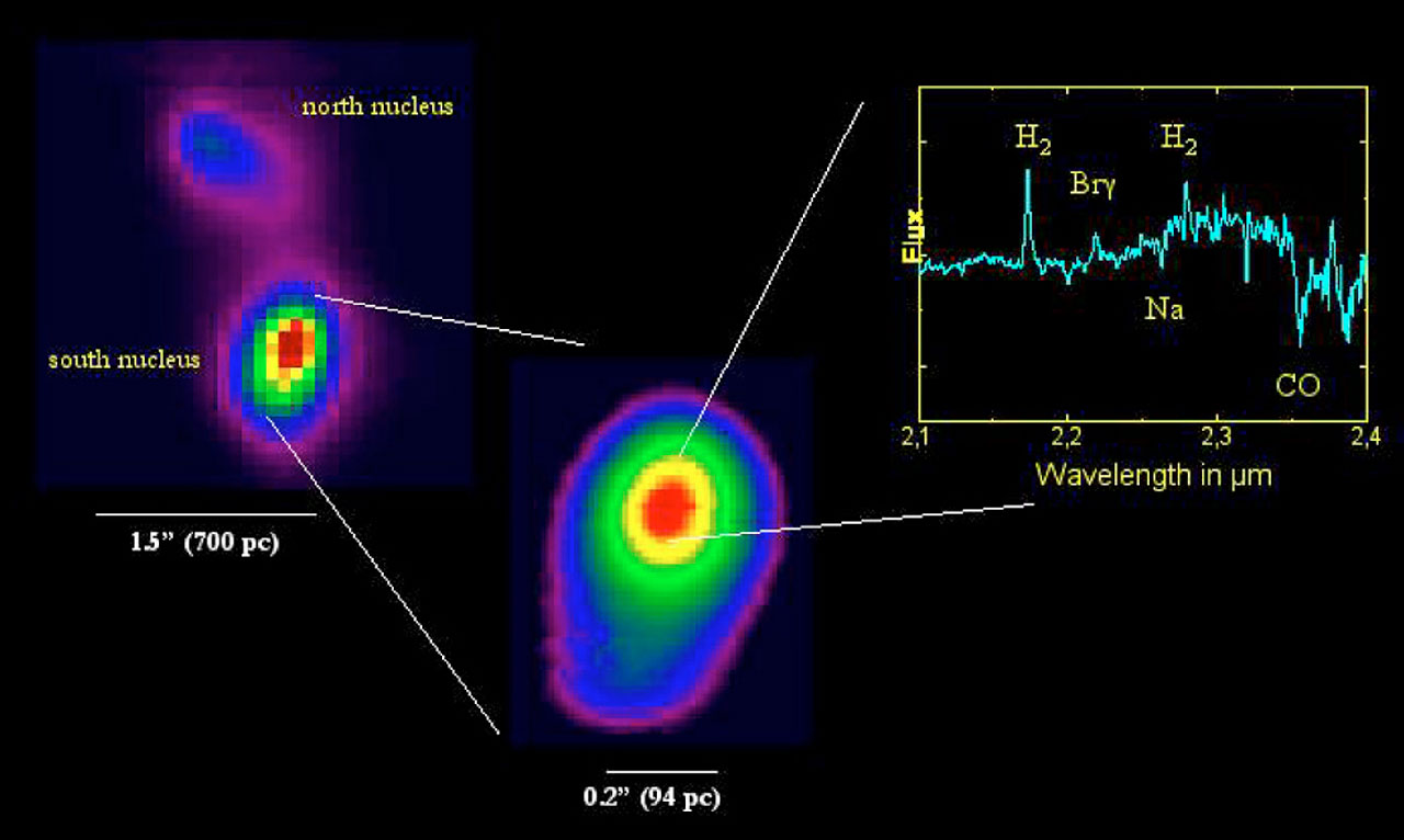 The high-resolution SINFONI data now makes it possible - for the first time - to investigate the distribution and motion of the molecular gas, as well as the stellar population in this galaxy with a "resolution" of about 80 light-years.