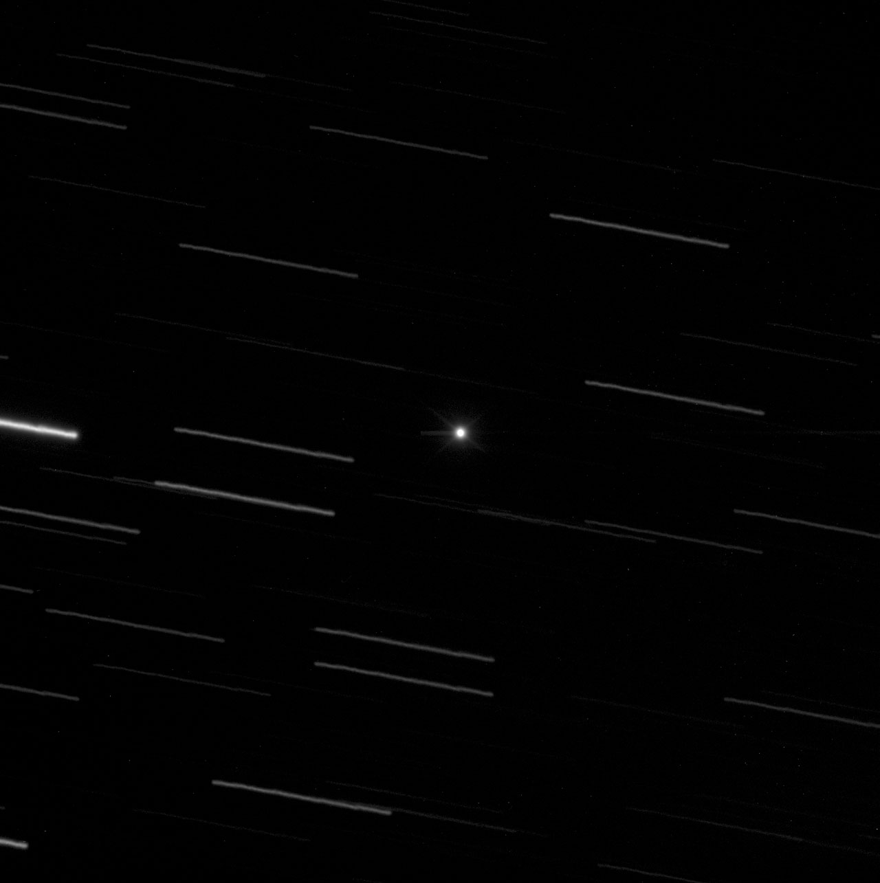They show the asteroid as a fast-moving object of magnitude 10, about 40 times fainter than what can be perceived with the unaided, dark-adapted eye. They also prove that Toutatis is right on track, following exactly the predicted trajectory in space and passing the Earth at a safe distance, as foreseen.