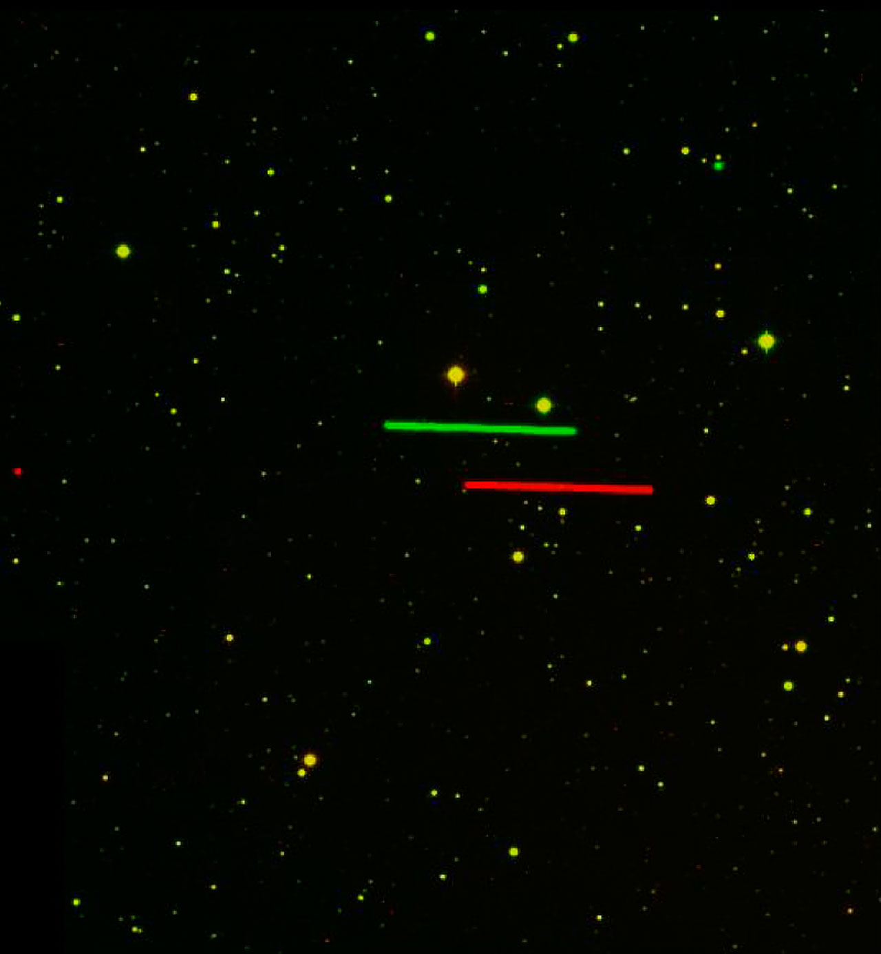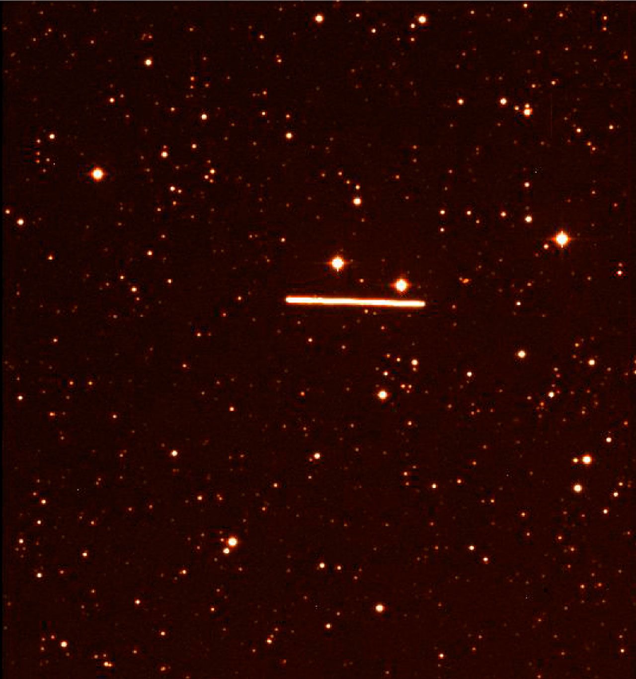 Simultaneous images obtained with telescopes at ESO's two observatories at La Silla and Paranal demonstrate the closeness of Toutatis to the Earth. As can be seen on the unique image that combines two of the exposures from the two observatories, the sighting angle to Toutatis from the two observatories, 513 km km apart, is quite different. Astronomers refer to this effect as the "parallax". The closer the object is, the larger is the effect, i.e., the larger will be the shift of the line-of-sight.