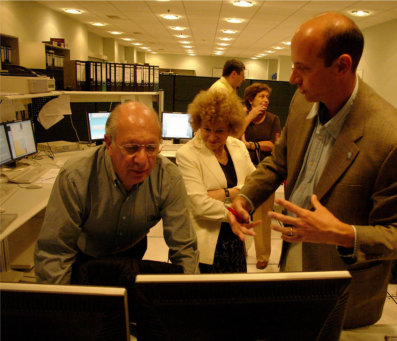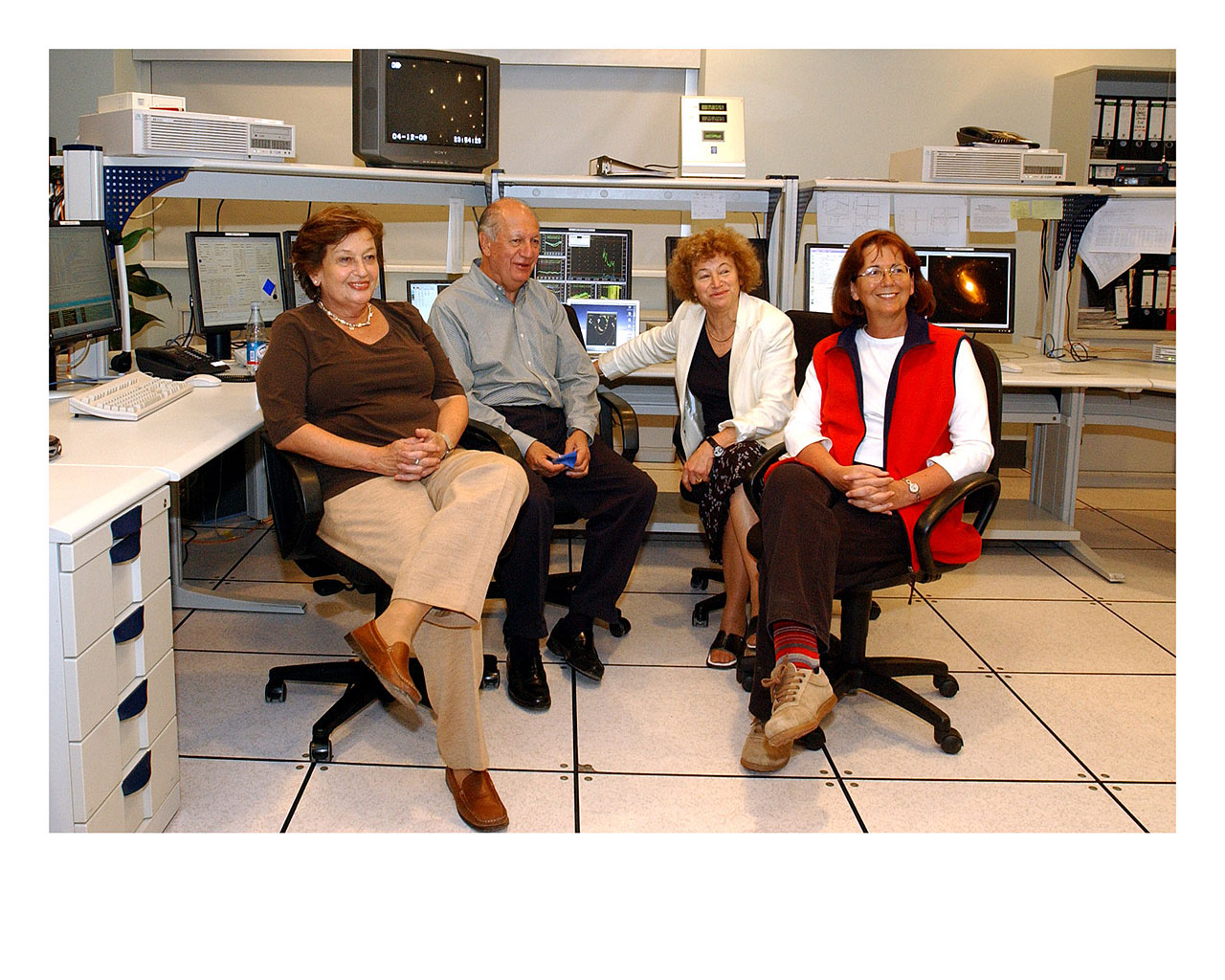 Having enjoyed the spectacular sunset over the Pacific Ocean from the Residence terrace, the President met informally with the Paranal employees who had gathered for this unique occasion. Later, President Lagos visited the VLT Control Room from where the four 8.2-m Unit Telescopes and the VLT Interferometer (VLTI) are operated. Here, the President took part in an observing sequence of the spiral galaxy NGC 1097 (see ESO Press Photo eso0438) from the console of the MELIPAL telescope.