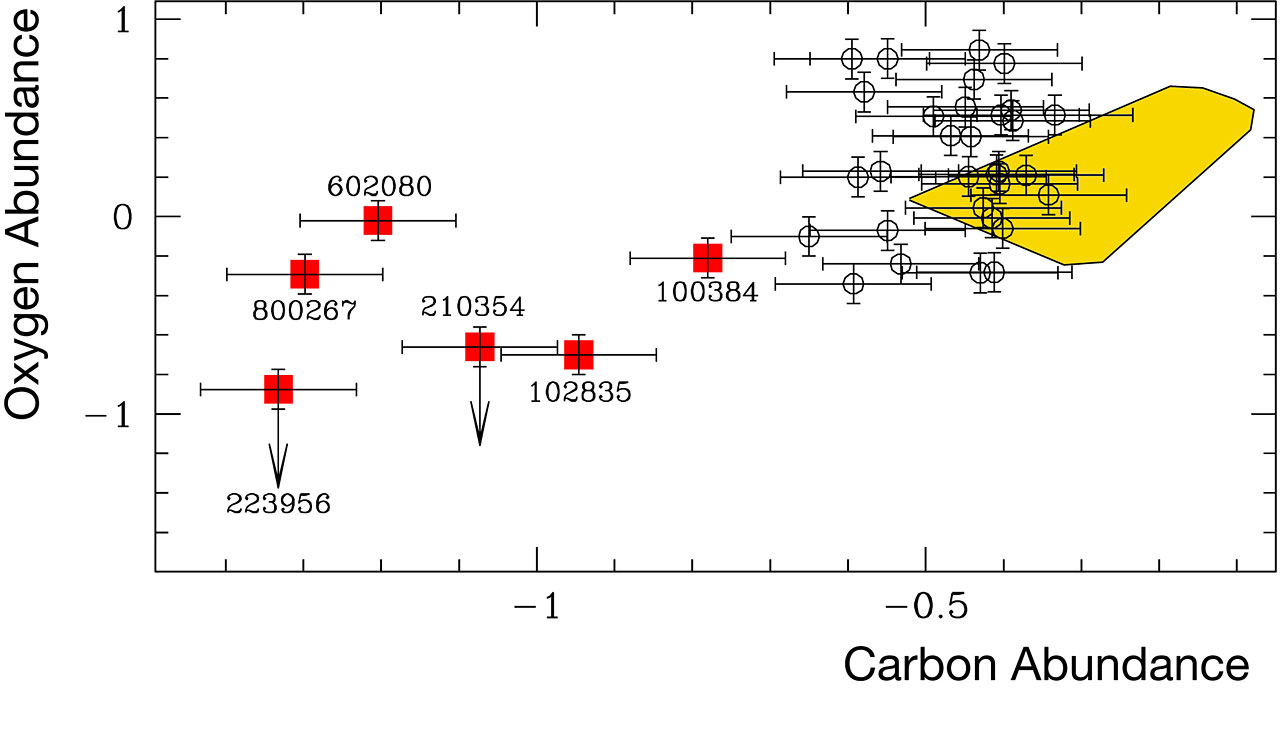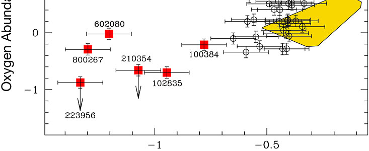 They discovered that six of these Blue straggler stars contain less carbon and oxygen than the majority of these peculiar objects. Such an anomaly indicates that the material at the surface of the blue stragglers comes from the deep interiors of a parent star [2]. Such deep material can reach the surface of the blue straggler only during the mass transfer process occurring between two stars in a binary system. Numerical simulations indeed show that the coalescence of stars should not result in anomalous abundances.