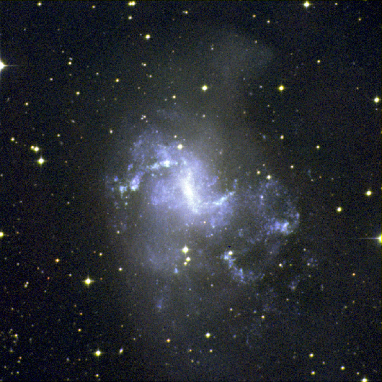 Strangely enough NGC 1313 seems to be an isolated galaxy. It is not part of a group and has no neighbour, and it is not clear whether it may have swallowed a small companion in its past. So what caused its asymmetry and stellar baby boom?