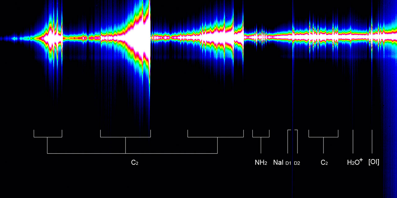 As well as taking images, the astronomers were able to investigate which gases were present in the comet's atmosphere [2] using spectroscopy. The usual gaseous species have been detected, such as cyanide, carbon, and ammonia, whose analysis will help the astronomers to determine the activity level of the comet and its chemical type.