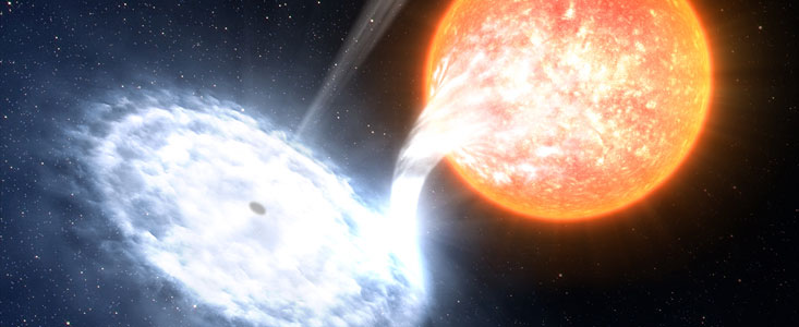 The visible-light emission from the neighbourhoods of black holes was widely thought to be a secondary effect, with a primary X-ray outburst illuminating the surrounding gas that subsequently shone in the visible range. But if this were so, any visible-light variations would lag behind the X-ray variability, and would be much slower to peak and fade away. "The rapid visible-light flickering now discovered immediately rules out this scenario for both systems studied," asserts Gandhi. "Instead the variations in the X-ray and visible light output must have some common origin, and one very close to the black hole itself."