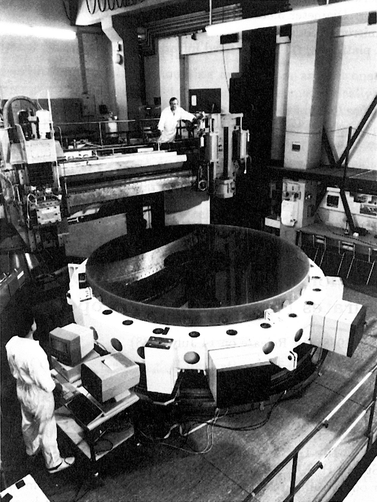 This Press Release is accompanied by a photo of the NTT primary mirror at the Zeiss works. Photos of the NTT mechanical structure and the NTT building, now erected at La Silla, are available on request.