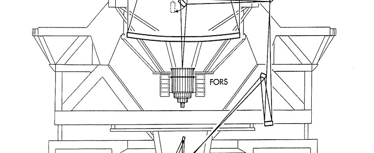 FORS (~ 2000 kg) will be the real workhorse instrument for the VLT and will be produced in two copies to be installed at two of the 8.2-metre VLT Unit Telescopes. FORS will work in the visual part of the spectrum (320 -1000 nm) and will refocus the collected light so that there will be a perfect match between the size of a stellar image and the individual image elements (pixels) of the very