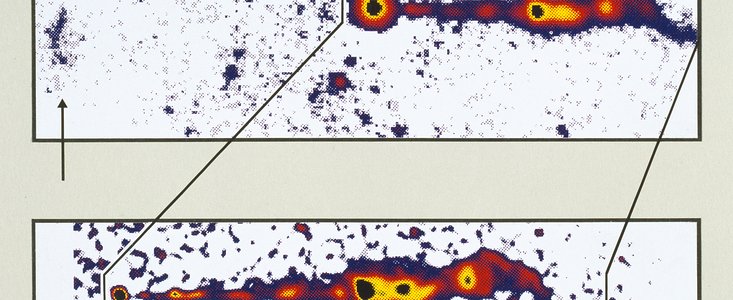 M87 is also special in that it belongs to a select group of radio-emitting galaxies. The jet in particular emits intense radio-emission which is caused by the interaction between a strong magnetic field and very energetic particles ejected from the centre. The same observations have also indicated the presence of a much more diffuse, rather symmetric radio-emission from much of the galaxy. However, contrary to most other radio galaxies, there has been no indication of the existence in M87 of a counter-jet in the opposite, eastward direction. This seemed to show that M87 must be a rather peculiar case and perhaps very different from other radio-galaxies with jets.