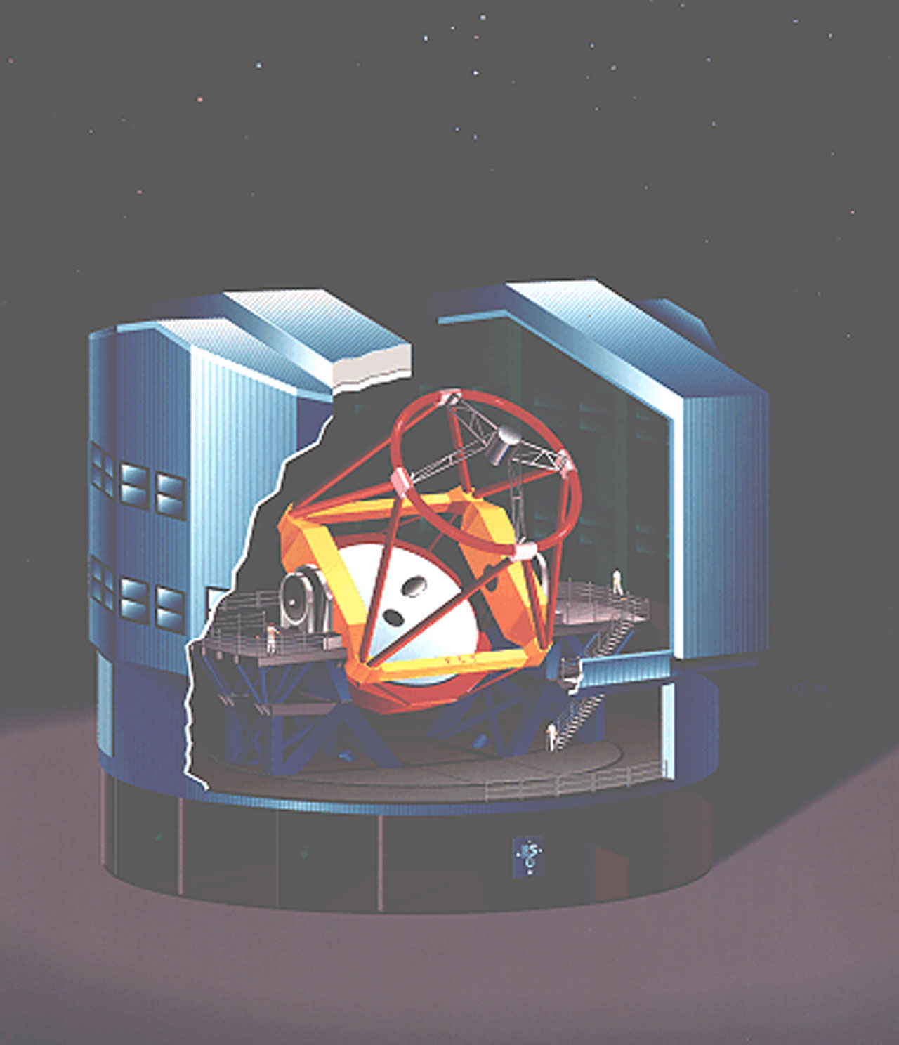 The heavy parts for Telescope no. 1 will arrive at Paranal shortly after May 1995. However, before the telescope assembly inside the enclosure can begin, a rotating coude platform will have to be installed below, directly on the base plate that will also carry the entire telescope structure above.