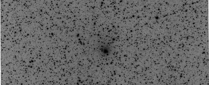 ESO Press Photo eso9521a is a direct photographic reproduction of the (negative) original Schmidt plate, made through an intermediate (positive) film in order to show the star field and the comet exactly as they look on the original plate. The diffuse image of the comet is situated at the centre. The comet moved 8 arcsec towards West and 3 arcsec towards North during the exposure.