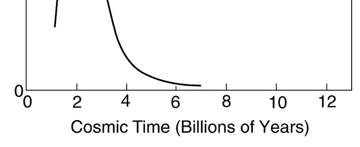 It was therefore possible to confirm that, beyond a distance corresponding to the time when the Universe was less than 10 percent of its present age (i.e. less than about 1-2 billion years old), the number of quasars decreases dramatically (see the figure) - a conclusion which is independent of any possible complications due to dust obscuration.