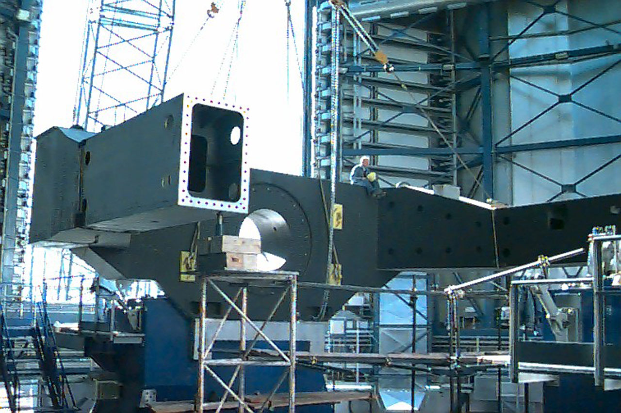 The installation of the ESO Very Large Telescope (VLT) at the Paranal Observatory in the Chilean Atacama desert continues at good pace. As the moment of first light of the first 8.2-metre telescope is getting closer, the assembly of the enormous, 400-ton mechanical structure proceeds according to schedule.