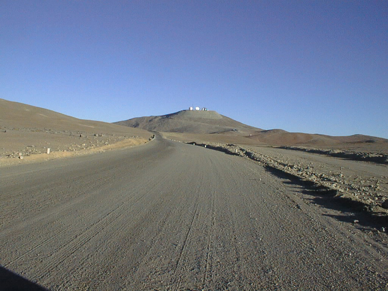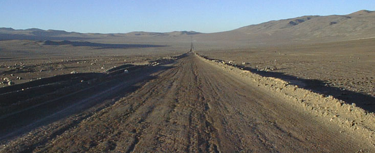 According to the Agreement, the improvements will be carried out between kms 15-33 and 45-72, as measured southwards from the junction between the `Old' and `New' Panamericana Road, some 60 kms south of Antofagasta. The improvements consist of grading, salt stabilizing and rolling. At this moment, a section of 23 kms has been completed, starting at the Paranal Observatory and moving back towards Antofagasta. Five more will be completed by the end of next week. This part of the road is now wide enough for two vehicles to pass each other easily and the surface is sufficiently good for driving speeds of up to about 90 km/hr to be maintained in safety.