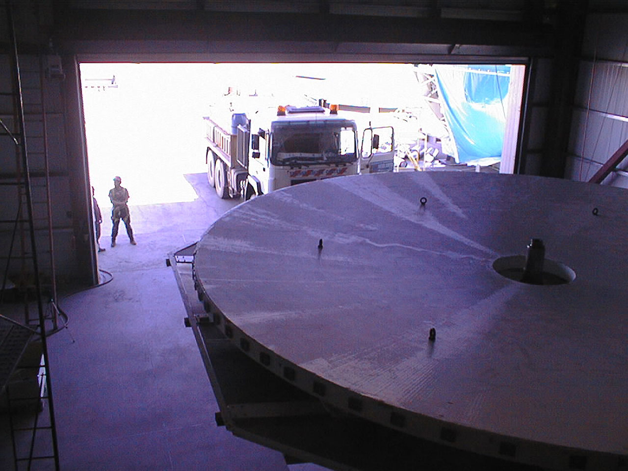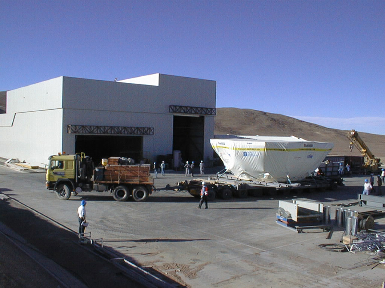 After a long journey from Europe, the first Very Large Telescope mirror cell (VLT M1 cell) and a concrete 8.2-m dummy mirror were unloaded in the Port of Antofagasta on October 31, 1997. From here, they were transported by special trucks to the Paranal Observatory.