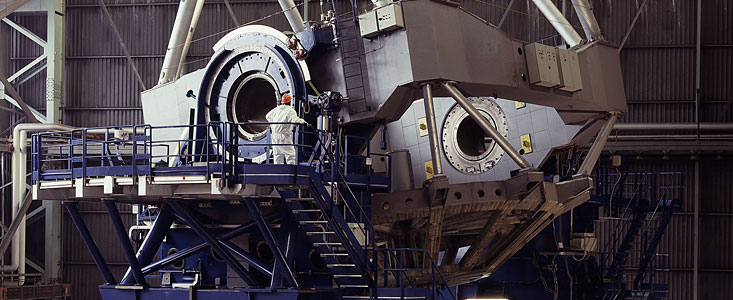 The first of these has been assembled and thoroughly tested in Milan, while the second is now being integrated at the Paranal site (for some recent images illustrating the rapid progress there. Additional information about the VLT structure is available in eso9518 that was published in connection with a visit by the members of the ESO Council to the Ansaldo Factory in Milan in December 1995.