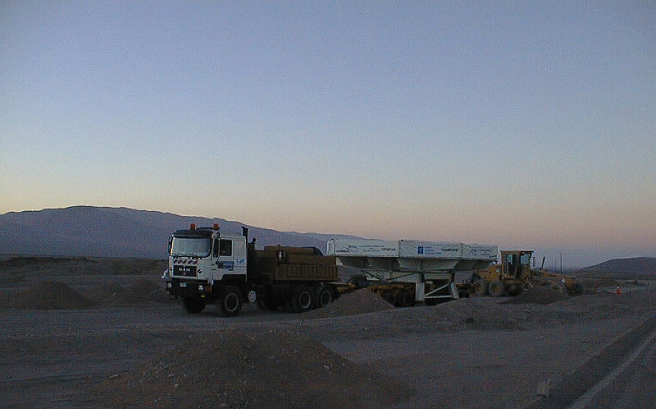 After one more day and night in the lonely Atacama desert, the first of the large VLT mirrors arrived at the foot of the Paranal mountain ahead of schedule on December 9. Everything went according to plan and the mirror in its shipping container is now safely stored away.