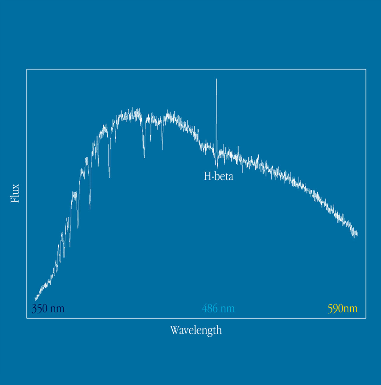 [1] A spectrum is the dispersion of light from an object into the colours of the rainbow. Spectroscopy is a key technique in astronomy: From a spectrum, it is possible to deduce important information about the object emitting the light, e.g. its chemical composition, surface temperature and the direction and speed of its motion (relative to us). This is especially important in the investigation of very distant objects as it allows the determination of their distance due to the expansion of the universe. This will be one of the main domains of the work with FORS.