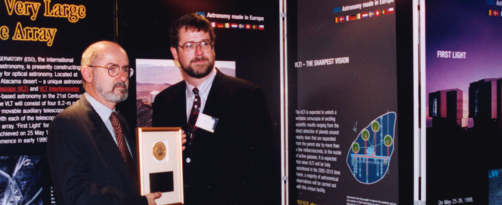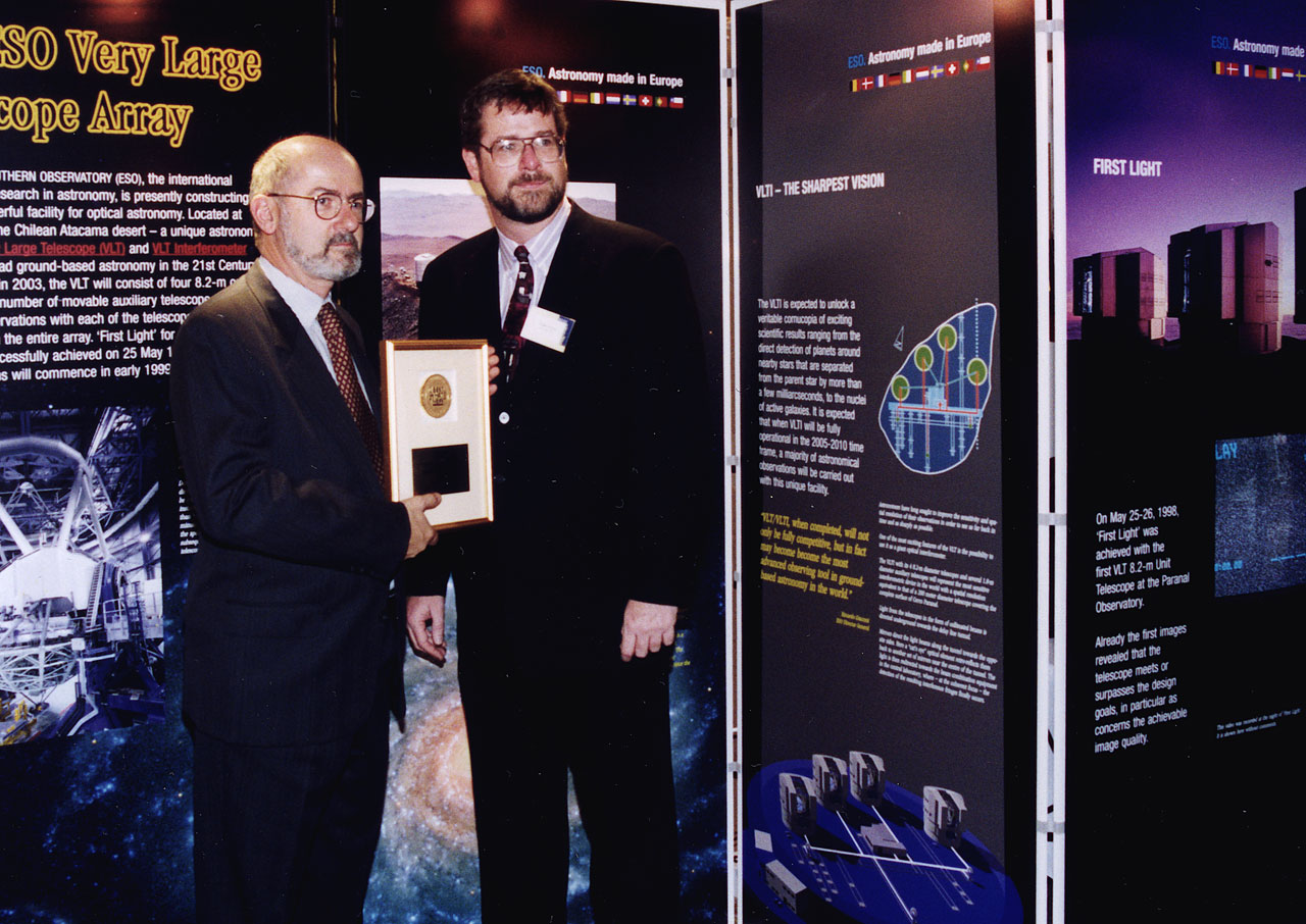 The award ceremony took place in New York on November 13, 1998. The VLT Project Manager, Professor Massimo Tarenghi, received a plaque on behalf of ESO and the VLT Team.
