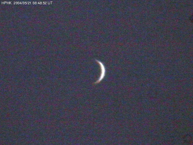 Attila Mizser Nikon Coolpix 4300 3 x zoom; 1 sec; f/4.9 [Seen from the Polaris Observatory] May 20, 2004, in the evening Budapest, Hungary | The Crescent of Venus [640 x 449 pix - 56k]