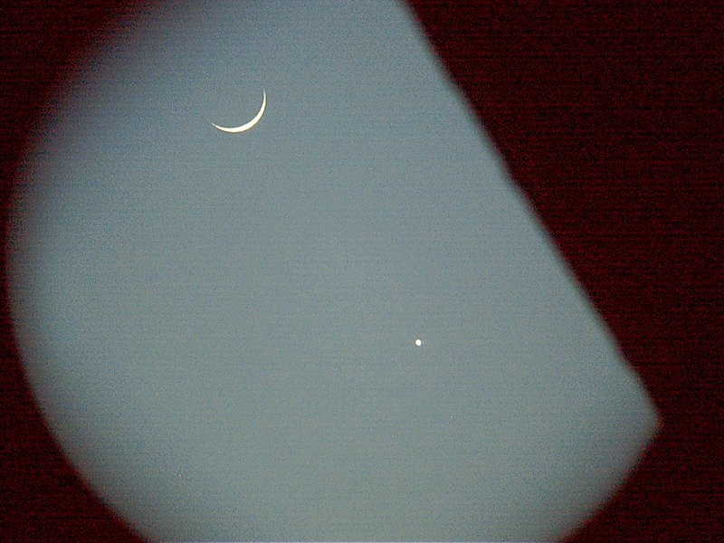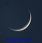 Radu Gherase Bucharest Astroclub, C5 Schmidt-Cassegrain telescope 17mm eyepiece projection Canon Powershot A60, ISO 50 Exposure: 1/1000 sec May 21, 2004, 13:07 UT Bucharest, Romania | Venus' Crescent after Egress [217 x 236 pix - 33k]