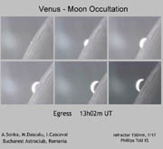 A. Sonka, M. Dascalu and I. Cascaval Bucharest Astroclub, 150mm refractor, f/34 Philips ToU Webcam May 21, 2004, 11:36 UT Bucharest, Romania | Venus Occultation (Egress) [547 x 500 pix - 109k]