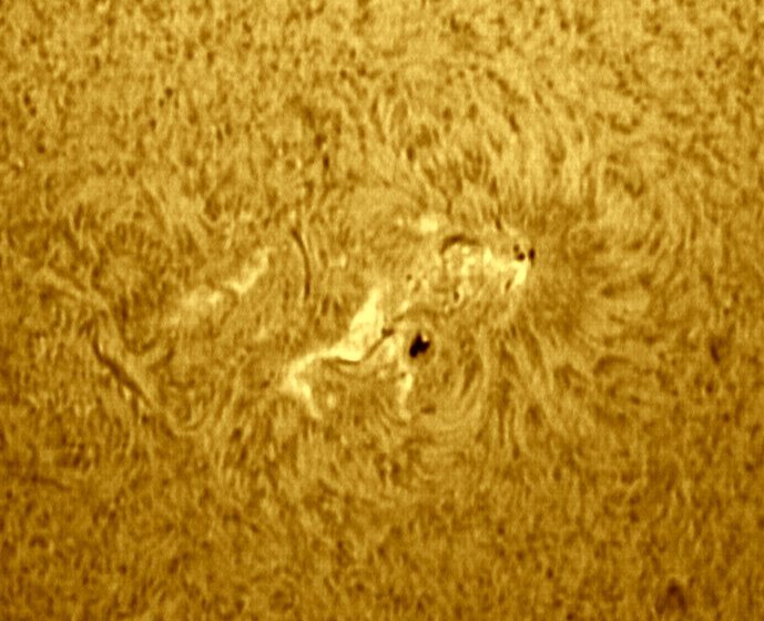 Dán András Planet Observers' Network, Hungarian Astronomical Association 6-inch ApoF20 Webcam May 21, 2004, 15:40 UT Hungary | Active Region 618 on the Sun [689 x 560 pix - 78k]
