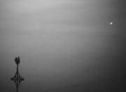 Michael Zimmermann [ AAW Darmstadt] 70mm Televue Pronto refractor Nikon Coolpix digital camera [to the left: the spire of the Dreifaltigskeitskirche (Trinity Church)in Darmstadt-Eberstadt] May 29, 2004, in the evening Darmstadt, Germany | Venus' Extremely Narrow Crescent [300 x 300 pix - 10k]