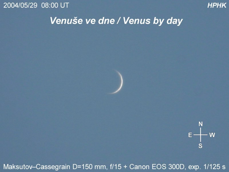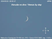 Michael Zimmermann [ AAW Darmstadt] 70mm Televue Pronto refractor Nikon Coolpix digital camera May 25, 2004 Darmstadt, Germany | Venus' Very Slim Crescent [800 x 600 pix - 50k]
