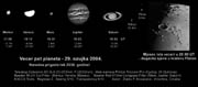 Heinz Kotzlowski Amateur Group for Astronomy Projects at ESO (AGAPE) Canon EOS 300D (3kx2k); ISO 400 f=50 mm; 30 sec April 22, 2004, 19:51 UT Garchinger Heide, Germany More images at this site | Five Planets and the Moon [861 x 377 pix - 122k]