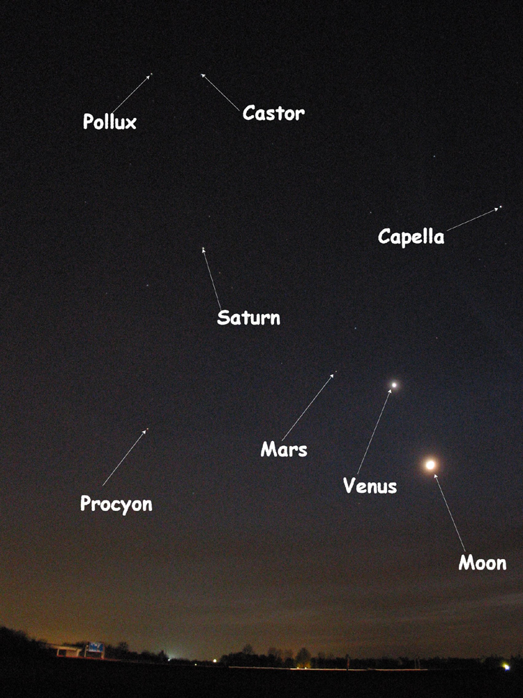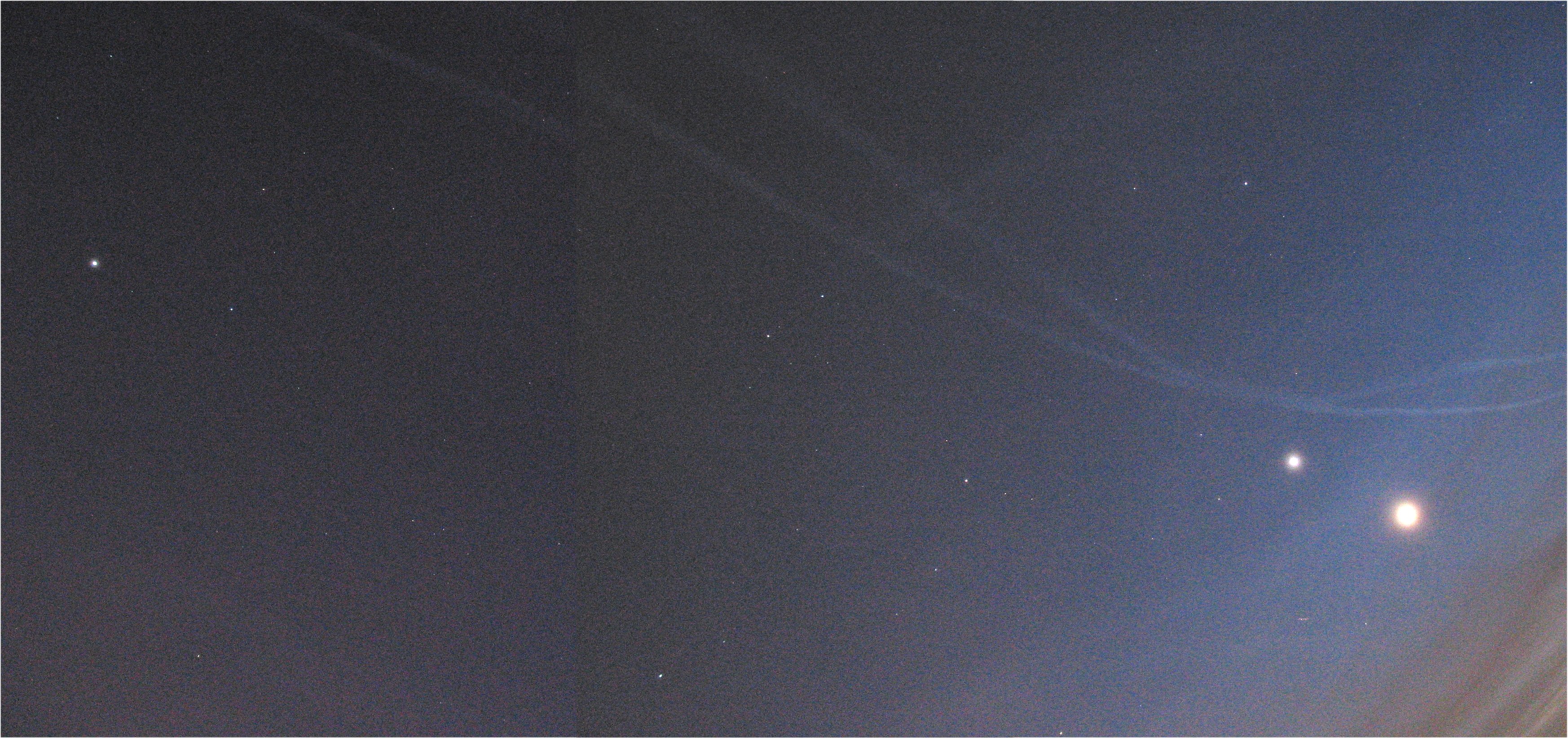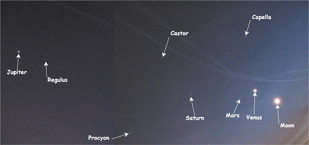 | Four Planets and the Moon [1063 x 500 pix - 542k] [3492 x 1643 pix - 1.4M] [With names - 1063 x 500 pix - 550k] [With names - 3492 x 1643 pix - 1.5M]