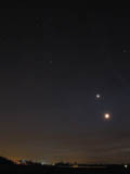 Francoise Delplancke Amateur Group for Astronomy Projects at ESO (AGAPE) Canon G2 with wide-angle [Composite of two photos - some contrails] April 22, 2004, 19:30 UT Garching, Germany More images at this site | Three Planets and the Moon [750 x 1000 pix - 604k] [1704 x 2272 pix - 794k] [With names - 750 x 1000 pix - 616k] [With names - 1704 x 2272 pix - 815k]