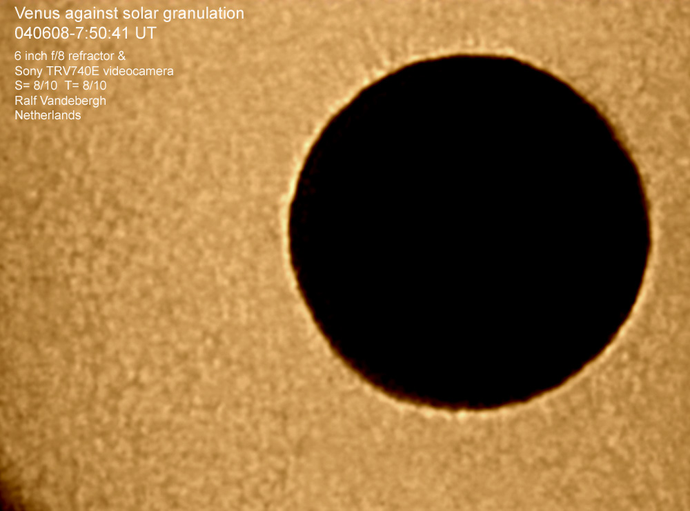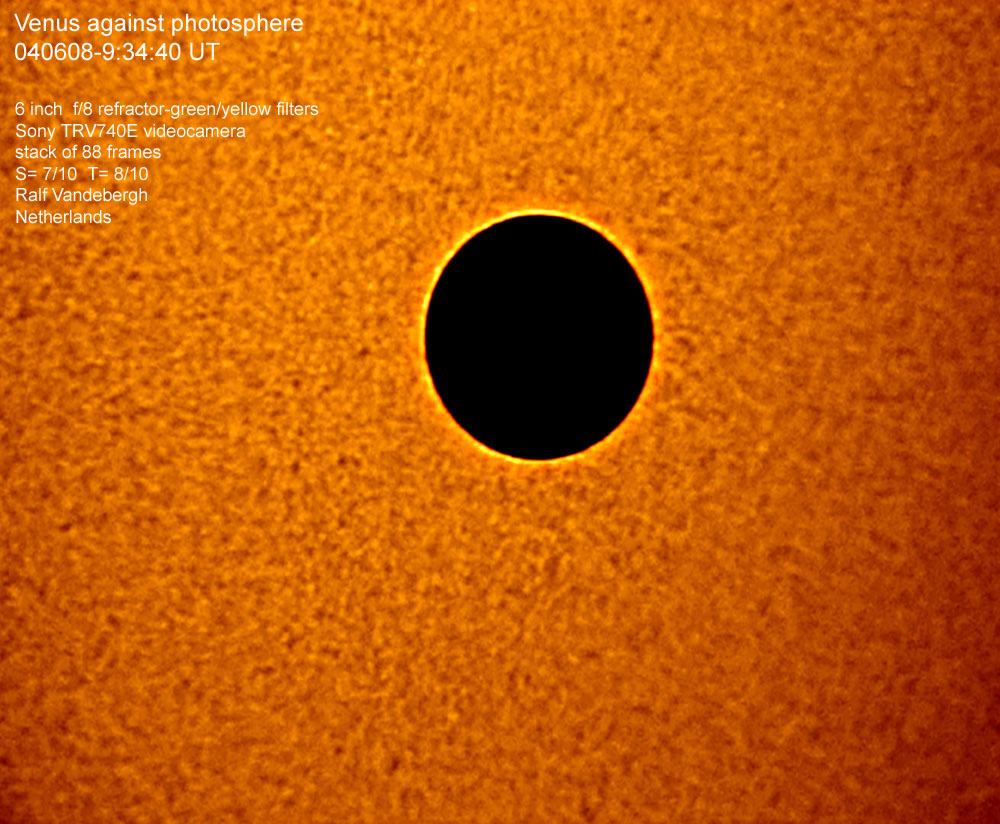 Ralf Vandebergh 6-inch f/8 refractor June 8, 2004, 7:50:41 UT The Netherlands | Venus and the Photosphere [1000 x 824 pix - 202k]