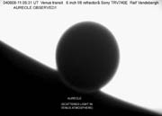 Ralf Vandebergh 6-inch f/8 refractor [Sunlight scattered in the upper layers of Venus' atmosphere produces a bright ring - an "aureole"] June 8, 2004, 11:05:31 UT The Netherlands | Venus Transit [400 x 400 pix - 25k]