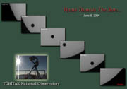 Tuncay Ozisik Tübitak National Observatory 12-inch Meade LX200 f/10 Throusand Optical Solar Filter Astrovid StellaCam EX Video CCD Sony GVD800E Digital Recorder More images at this site June 8, 2004 Antalya, Turkey |