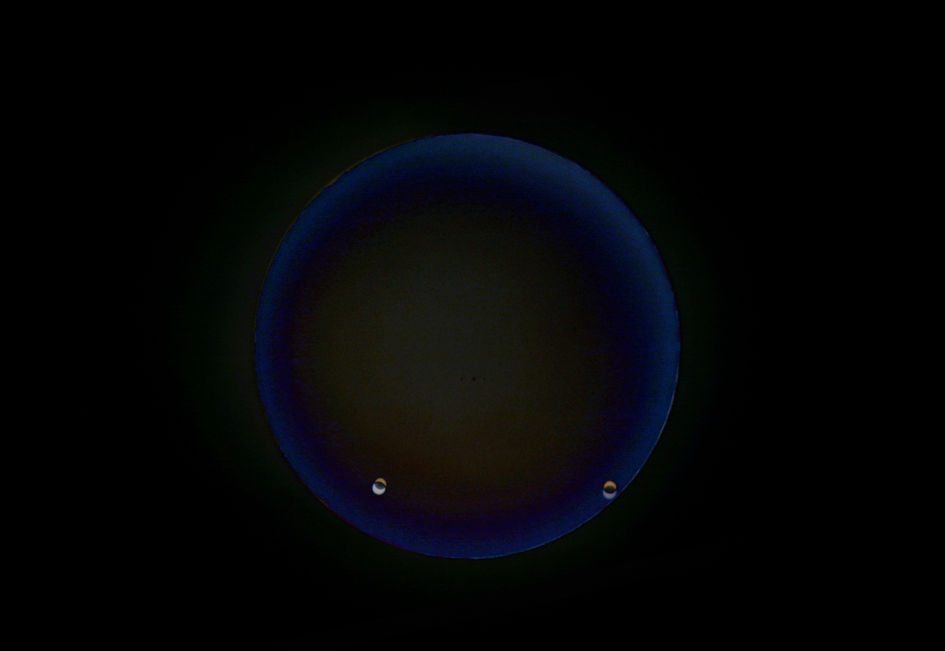 Ralf Vandebergh 6-inch refractor f/8 Sony TRV740 camcorder [All images are composites of several frames] June 8, 2004, 11:00 - 11:05 UT The Netherlands | Venus Transit from Denmark and Ile de Reunion [600 x 413 pix - 93k] [3156 x 2175 pix - 2561k]