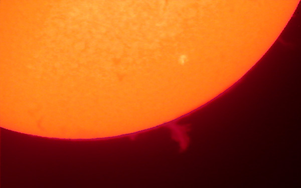Hans-Göran Lindberg Newton 254 195/2602mm Mintron MS-168EP MV-1 Filter [Preparing for transit observations] August 20, 2003 - UT 10:20 [Sun image] Kärrbo Observatory Skultuna, Sweden More images at this site | Venus and the Moon [Montage] [443 x 293 pix - 6k]