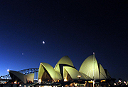 Laszlo Kiss Canon Powershot A70 50 ASA [Above the Sydney Opera House] April 24, 2004, ~8:15 UT Sydney, Australia | Venus and the Moon above Sydney [902 x 680 pix - 300k]